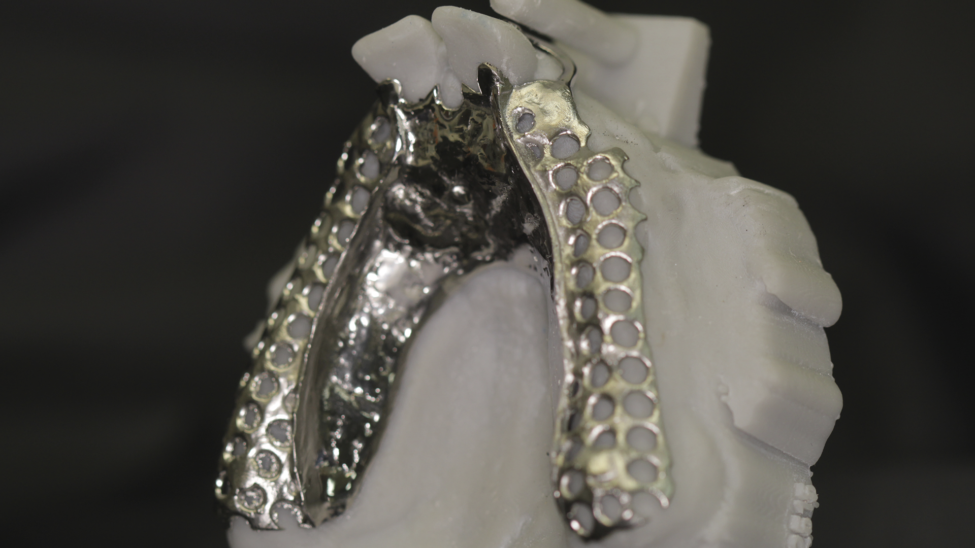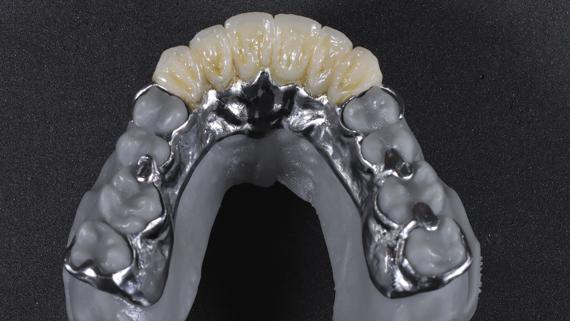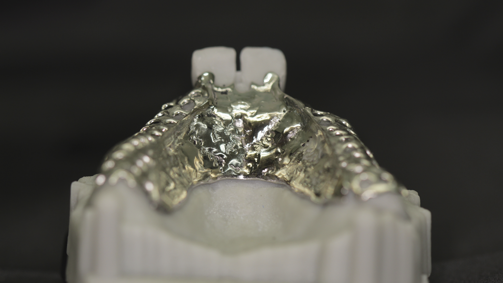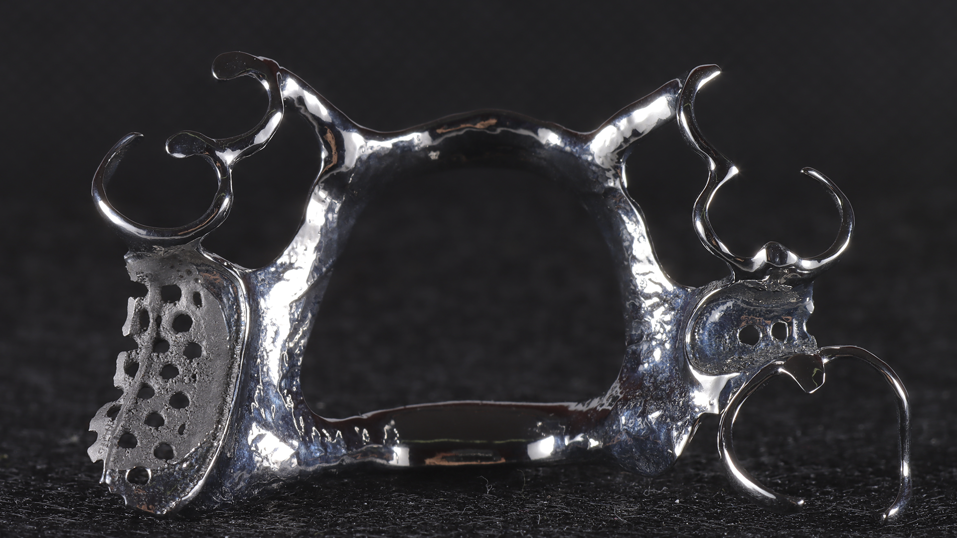 La estructura metálica se fabrica mediante colado de precisión (o fresado si el caso lo requiere), utilizando aleaciones biocompatibles de alta resistencia como el cromo-cobalto, garantizando ligereza, rigidez y mínima deformación.